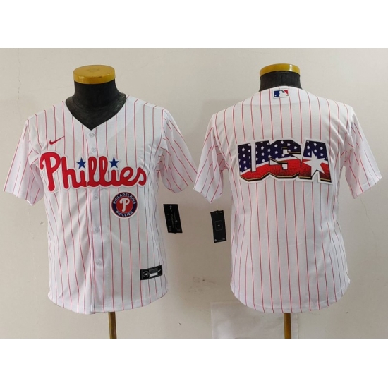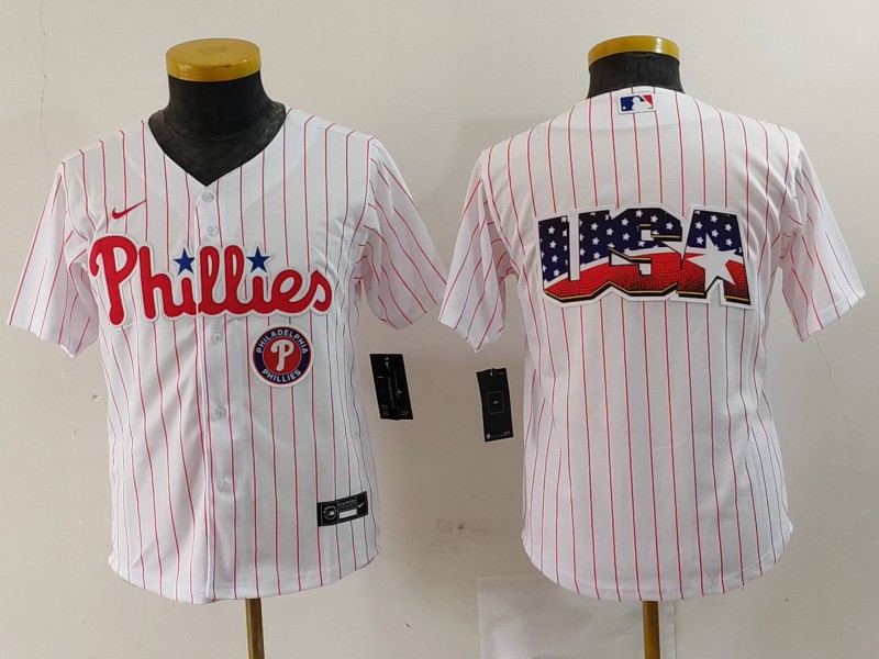 - Youth Philadelphia Phillies Team White Cool Base Stitched Baseball Jersey 1