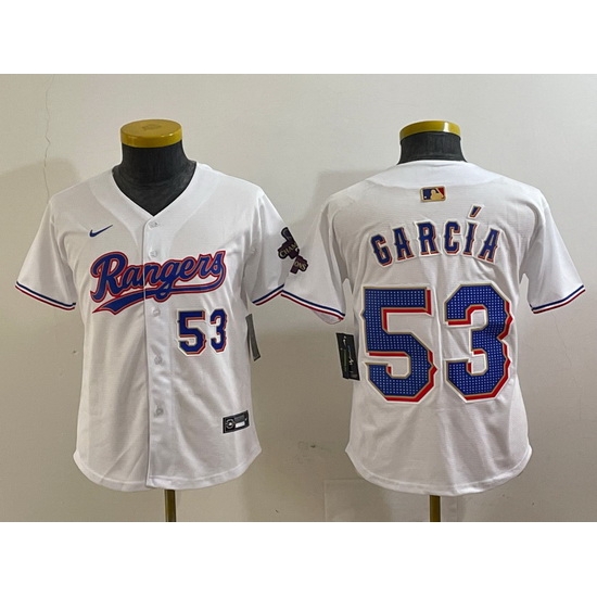 - Youth Texas Rangers 32 Evan Carter White Gold Stitched Baseball Jersey