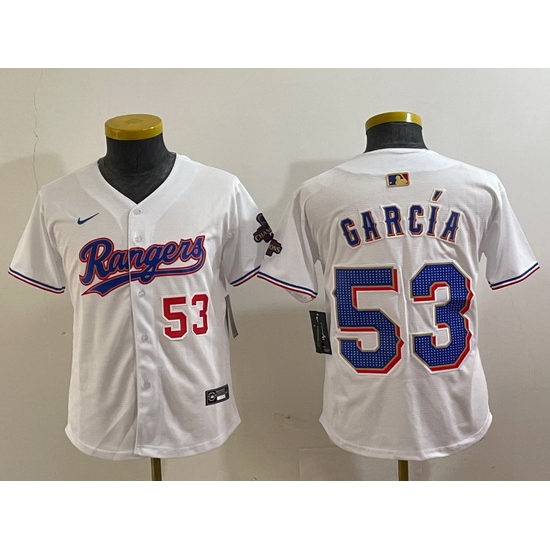 - Youth Majestic Texas Rangers 30 Nomar Mazara Replica White Home Cool Base MLB Jersey