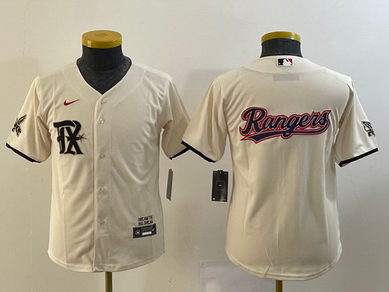 - Youth Texas Rangers 53 Adolis Garcia White Gold Cool Base Stitched Baseball Jersey 1