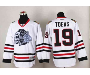 - Chicago Blackhawks 19 Jonathan Toews Red Skull Logo Fashion Black Red Split NHL Jerseys